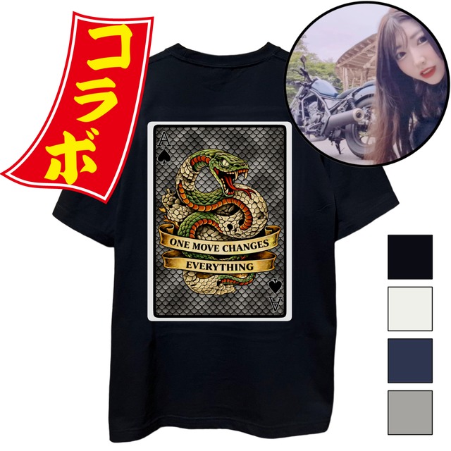 全品送料無料キャンペーン! さらに 2点以上お買い上げで宅急便でお届けします (๑˃̵ᴗ˂̵)ง ━━━━━━━━━✦━━━━━━━━━ GOGOキャンペーン開催中!! 豪華おまけ5点セット(2026年卓上カレンダー・A4クリアファイル・ステッカー・缶バッジ・懐かしの駄菓子) をプレゼントしています( ´͈ ᵕ `͈ ) ✧・゚: *✧・゚:* ━━━━━━━━━✦━━━━━━━━━ 【今だけ即発送】規定数まではすぐ届きます! なくなり次第、予約販売に切り替わります。 ※このデザインは再販なし・完全数量限定です。 =================== 作品紹介(FUBUKIさんからのメッセージ) =================== こんにちは☆ 熊本でレブルに乗っている FUBUKI です。 この度、GMTB様よりお声掛けをいただき、コラボ商品を制作させていただくことになりました♡ デザインについてはとても悩みましたが、GMTB様と相談を重ね、 蛇が脱皮するモチーフを取り入れたデザインにしました✧ そして 「ONE MOVE CHANGES EVERYTHING」 という英文には、 「たった一つの行動が、すべてを変える」 という意味を込めています。 私自身、バイクのアカウントを始めてまだ1年も経っていませんが、 1年前の自分では想像もできなかったような経験を、今たくさんさせていただいています。 振り返ってみると、そのすべては 「ほんの一歩踏み出したこと」から始まっていました(˘ᵕ˘♡) だから今回のデザインには、 過去を脱ぎ捨て、次の自分へ進んでいく象徴として 脱皮する蛇を選びました。 想いの詰まった、かっこいいデザインに仕上がっています。 多くの方に手に取っていただけたら嬉しいです✧ ぜひお揃いで着ましょう♡ =================== 購入特典 =================== コラボアイテムを2点以上お買い上げの方の中から、抽選で1名様に FUBUKIさん直筆の宛名入りミニサイン色紙をプレゼント! ・当選者は販売終了後、GMTBのInstagramストーリーズでイニシャル発表 ・宛名はご購入者様のフルネームとなります =================== 販売期間・数量について =================== ・【販売期間: 月 日まで】(数量に達し次第、終了) ・このデザインは今しか手に入りません ・再販予定なし!あとで探しても手に入りません =================== Tシャツの特徴 =================== ・定番のレギュラーシルエット 程よいゆとりとフィット感を両立し、ストリートにもデイリーにも馴染む万能シルエット ・シルエットが綺麗 GMTB®︎のTシャツボディは、身幅・肩幅・着丈のバランスが絶妙で、スタイルが良く見えると好評 ・5.6オンスのやや厚手でしっかりとした生地 ・洗濯に強く、へたれにくく長持ち ・首元はダブルステッチで型崩れしにくい仕様 ・左胸&両腕にGMTBロゴ入り ・ユニセックス対応 =================== 発送目安 =================== ・通常2営業日以内に発送 ※注文集中時は遅れる可能性があります =================== ブランド紹介 =================== GMTBは2023年に誕生したアパレルブランド。 トランプをモチーフにした遊び心あるデザインと、日常で使える“本物志向”の品質を大切にしています。 =================== 素材 =================== ・コットン100% ※お色グレーのみ、コットン90%ポリエステル10% ※モニター環境により色味が異なる場合があります =================== サイズ目安 =================== ・男性 177cm/69kg:Lでジャスト、XLでゆったり ・男性 172cm/71kg:Lでジャスト、XLでゆったり ・女性 158cm:Sでジャスト、Mでゆったり ※サイズ実寸は画像最後をご確認ください ※サイズ違いによる交換・キャンセルは不可 =================== GMTBについて(スタッフの想い) =================== GMTBは、“着る人の人生が少しでも前向きに変わるように”という想いを込めて立ち上げたブランドです。 見た目のカッコよさはもちろん大切。でも、それだけじゃ足りない。 「毎朝、鏡の前で袖を通したときに、自分にスイッチが入る服」—— それがGMTBの目指しているTシャツやフーディーです。 サイズ感は、日本人の体型に合わせて「ちょうどいい」ゆとりとフィット感を追求。身幅・肩幅・着丈のバランスも調整を重ね、スタイルが綺麗に見えるシルエットを実現しました。 また、ロゴデザインの形や配置にも徹底的にこだわり、視線の流れとスタイルアップ効果を研究。力強さの中に、上品でスタイリッシュな存在感を宿しました。 素材も、何十枚ものサンプルから厳選し、デザイナー自身が何度も洗濯テストを繰り返し、洗濯に強くて長く着られる“本物の定番”を目指して選び抜いています。 そして、ロゴやプリントに込めたメッセージも、すべて意味があります。 “自分の生き方を信じる勇気”や、“一歩踏み出す決意”が、さりげなくデザインに込められています。 ファッションは自己表現であり、自分を変えるスイッチでもある。 そんな想いに共感してくれる仲間が、ひとりでも増えたら嬉しいです。 これが私たちGMTBの信念です。 =================== 他のコラボ商品・Tシャツ一覧はこちら =================== このデザインが気に入った方は、こちらもぜひチェックし