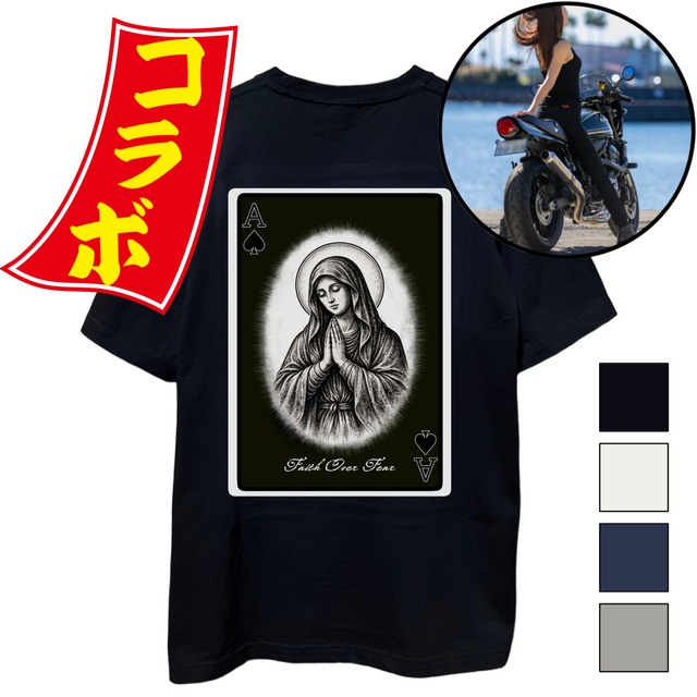 全品送料無料キャンペーン! さらに 2点以上お買い上げで宅急便でお届けします (๑˃̵ᴗ˂̵)ง ━━━━━━━━━✦━━━━━━━━━ GOGOキャンペーン開催中!! 豪華おまけ5点セット(2026年卓上カレンダー・A4クリアファイル・ステッカー・缶バッジ・懐かしの駄菓子) をプレゼントしています( ´͈ ᵕ `͈ ) ✧・゚: *✧・゚:* ━━━━━━━━━✦━━━━━━━━━ 【今だけ即発送】規定数まではすぐ届きます! なくなり次第、予約販売に切り替わります。 ※このデザインは再販なし・完全数量限定です。 =================== 作品紹介(aikoさんからのメッセージ) =================== バイク女子のaikoです! 今回、GMTB様からお声がけをいただき、 コラボレーションさせていただきました。 デザインは 「優しさがあって、力強い女性」 そんなマリア様をイメージしています。 マリア様は、私自身が 「こんな女性でありたい」と感じる とても素敵な女性像のひとりです。 バイクに乗っていると、 走ることに怖さや恐れを感じる瞬間もあります。それでも、それ以上にバイクだからこそ出会えた世界や仲間がありました。 走るたびに、心は強くなる。 恐れより、信念で走る。 そんな想いを込めて 「Faith Over Fear」 ー"信念は恐れに勝つ" という言葉を添えています。 このデザインに込めた想いが、 皆さまに少しでも伝わったら嬉しいです。 私自身もこのパーカーを着て、 これからもバイクライフを楽しんでいきたいと思います。 ぜひ、皆さんも一緒に着て楽しみましょう♡ 背中から、マリア様がそっと見守ってくれます♡ =================== 購入特典 =================== コラボアイテムを2点以上お買い上げの方の中から、抽選で1名様に aikoさん直筆の宛名入りミニサイン色紙をプレゼント! ・当選者は販売終了後、GMTBのInstagramストーリーズでイニシャル発表 ・宛名はご購入者様のフルネームとなります =================== 販売期間・数量について =================== ・【販売期間: 月 日まで】(数量に達し次第、終了) ・このデザインは今しか手に入りません ・再販予定なし!あとで探しても手に入りません =================== Tシャツの特徴 =================== ・定番のレギュラーシルエット 程よいゆとりとフィット感を両立し、ストリートにもデイリーにも馴染む万能シルエット ・シルエットが綺麗 GMTB®︎のTシャツボディは、身幅・肩幅・着丈のバランスが絶妙で、スタイルが良く見えると好評 ・5.6オンスのやや厚手でしっかりとした生地 ・洗濯に強く、へたれにくく長持ち ・首元はダブルステッチで型崩れしにくい仕様 ・左胸&両腕にGMTBロゴ入り ・ユニセックス対応 =================== 発送目安 =================== ・通常2営業日以内に発送 ※注文集中時は遅れる可能性があります =================== ブランド紹介 =================== GMTBは2023年に誕生したアパレルブランド。 トランプをモチーフにした遊び心あるデザインと、日常で使える“本物志向”の品質を大切にしています。 =================== 素材 =================== ・コットン100% ※お色グレーのみ、コットン90%ポリエステル10% ※モニター環境により色味が異なる場合があります =================== サイズ目安 =================== ・男性 177cm/69kg:Lでジャスト、XLでゆったり ・男性 172cm/71kg:Lでジャスト、XLでゆったり ・女性 158cm:Sでジャスト、Mでゆったり ※サイズ実寸は画像最後をご確認ください ※サイズ違いによる交換・キャンセルは不可 =================== GMTBについて(スタッフの想い) =================== GMTBは、“着る人の人生が少しでも前向きに変わるように”という想いを込めて立ち上げたブランドです。 見た目のカッコよさはもちろん大切。でも、それだけじゃ足りない。 「毎朝、鏡の前で袖を通したときに、自分にスイッチが入る服」—— それがGMTBの目指しているTシャツやフーディーです。 サイズ感は、日本人の体型に合わせて「ちょうどいい」ゆとりとフィット感を追求。身幅・肩幅・着丈のバランスも調整を重ね、スタイルが綺麗に見えるシルエットを実現しました。 また、ロゴデザインの形や配置にも徹底的にこだわり、視線の流れとスタイルアップ効果を研究。力強さの中に、上品でスタイリッシュな存在感を宿しました。 素材も、何十枚ものサンプルから厳選し、デザイナー自身が何度も洗濯テストを繰り返し、洗濯に強くて長く着られる“本物の定番”を目指して選び抜いています。 そして、ロゴやプリントに込めたメッセージも、すべて意味があります。 “自分の生き方を信じる勇気”や、“一歩踏み出す決意”が、さりげなくデザインに込められています。 ファッションは自己表現であり、自分を変えるスイッチでもある。 そんな想いに共感してくれる仲間が、ひとりでも増えたら嬉しいです。 これが私たちGMTBの信念です。 =================== 他のコラボ商品・Tシャツ一覧はこちら =================== このデザインが気に入った方は、こちらもぜひチェックしてください aiko × GMTB コラボ商品一覧 ▶︎https://gmtb.base.shop/s