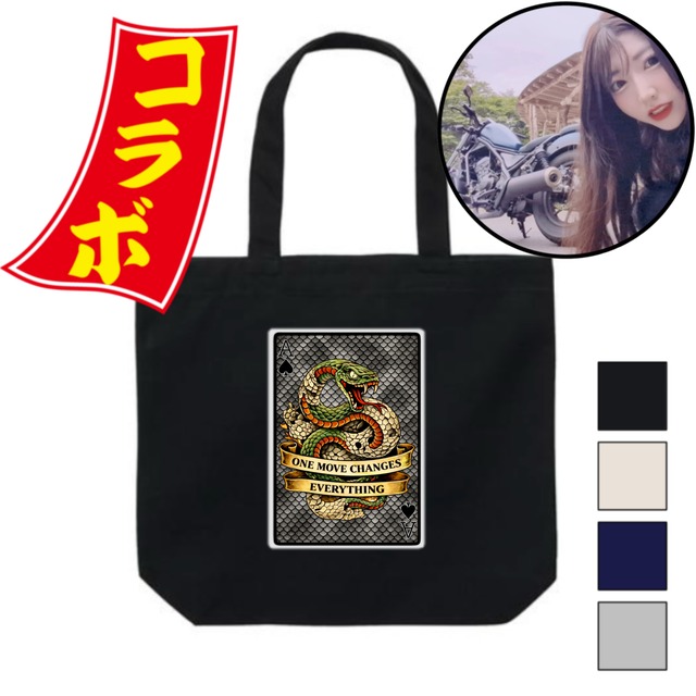 全品送料無料キャンペーン! さらに 2点以上お買い上げで宅急便でお届けします (๑˃̵ᴗ˂̵)ง ━━━━━━━━━✦━━━━━━━━━ GOGOキャンペーン開催中!! 豪華おまけ5点セット (GMTBオリジナルA4クリアファイル/GMTBオリジナル付箋/GMTBオリジナルステッカー/GMTBオリジナル缶バッジ/懐かしの駄菓子) をプレゼントしています( ´͈ ᵕ `͈ ) ✧・゚: *✧・゚:* ━━━━━━━━━✦━━━━━━━━━ 【今だけ即発送】規定数まではすぐ届きます! なくなり次第、予約販売に切り替わります。 ※このデザインは再販なし・完全数量限定です。 =================== 作品紹介(FUBUKIさんからのメッセージ) =================== こんにちは☆ 熊本でレブルに乗っている FUBUKI です。 この度、GMTB様よりお声掛けをいただき、コラボ商品を制作させていただくことになりました♡ デザインについてはとても悩みましたが、GMTB様と相談を重ね、 蛇が脱皮するモチーフを取り入れたデザインにしました✧ そして 「ONE MOVE CHANGES EVERYTHING」 という英文には、 「たった一つの行動が、すべてを変える」 という意味を込めています。 私自身、バイクのアカウントを始めてまだ1年も経っていませんが、 1年前の自分では想像もできなかったような経験を、今たくさんさせていただいています。 振り返ってみると、そのすべては 「ほんの一歩踏み出したこと」から始まっていました(˘ᵕ˘♡) だから今回のデザインには、 過去を脱ぎ捨て、次の自分へ進んでいく象徴として 脱皮する蛇を選びました。 想いの詰まった、かっこいいデザインに仕上がっています。 多くの方に手に取っていただけたら嬉しいです✧ ぜひお揃いで着ましょう♡ =================== 購入特典 =================== コラボアイテムを2点以上お買い上げの方の中から、抽選で1名様に FUBUKIさん直筆の宛名入りミニサイン色紙をプレゼント! ・当選者は販売終了後、GMTBのInstagramストーリーズでイニシャル発表 ・宛名はご購入者様のフルネームとなります =================== 販売期間・数量について =================== ・【販売期間:3月25日まで】(数量に達し次第、終了) ・このデザインは今しか手に入りません ・再販予定なし!あとで探しても手に入りません =================== トートバッグの特徴 =================== ・頑丈な厚手キャンバス × GMTB®デザイン 12ozキャンバスの丈夫なトートに、GMTB®のオリジナルデザインを大胆プリント。日常にアートを持ち歩ける仕上がり。 ・コラボならではの特別感 今回のコラボレーションでしか手に入らない限定グラフィック。持つだけで会話が生まれる一点。 ・デイリーに使えるサイズ感 A4も余裕で収納。仕事、学校、買い物、ジム通いまで幅広くカバー。毎日の「ちょうどいい」を叶える。 ・大容量で実用的 マチ付きデザインだから、お弁当やペットボトルも余裕で入る。使うたびに実用性を実感。 ・内ポケット付き 2つに分かれた内ポケット付きで、小物の収納にも便利で実用的。 ・肩掛け・手持ちOK バランスの良い持ち手の長さで、ファッションに自然に溶け込む。 ・環境にも優しいマイバッグ 汚れてきたら洗濯して何度でも使えるサステナブルな選択。スタイルとエコを両立。洗濯しても型崩れしにくい。 ・「Great Mind Try Best.」の精神を形に ただのトートではなく、“挑戦する精神”を日常で纏えるアイテム。 =================== 発送目安 =================== 通常2営業日以内に発送 ※ご注文が集中した場合は、発送までお時間をいただくことがあります =================== ブランド紹介 =================== GMTBは2023年に誕生したアパレルブランド。 トランプをモチーフにした遊び心あるデザインと、日常で使える“本物志向”の品質を大切にしています。 =================== 素材 =================== コットン100% ※モニター環境により実際の色味と異なる場合があります =================== サイズ目安 =================== 縦35 × 横(袋口幅)40 (底幅)30 ×マチ10 持ち手50 (単位:cm) =================== ブランドの想い(スタッフメッセージ) =================== GMTBは、“着る人の人生が少しでも前向きに変わるように”という想いを込めて立ち上げたブランドです。 見た目のカッコよさはもちろん大切。でも、それだけじゃ足りない。 「毎朝、鏡の前で袖を通したときに、自分にスイッチが入る服」—— それがGMTBの目指しているTシャツやフーディーです。 サイズ感は、日本人の体型に合わせて「ちょうどいい」ゆとりとフィット感を追求。身幅・肩幅・着丈のバランスも調整を重ね、スタイルが綺麗に見えるシルエットを実現しました。 また、ロゴデザインの形や配置にも徹底的にこだわり、視線の流れとスタイルアップ効果を研究。力強さの中に、上品でスタイリッシュな存在感を宿しました。 素材も、何十枚ものサンプルから厳選し、デザイナー自身が何度も洗濯テストを繰り返し、洗濯に強くて長く着られる“本物の定番”を目指して選び抜いています。 そして、ロゴやプリントに込めたメッセージも、すべて意味があ