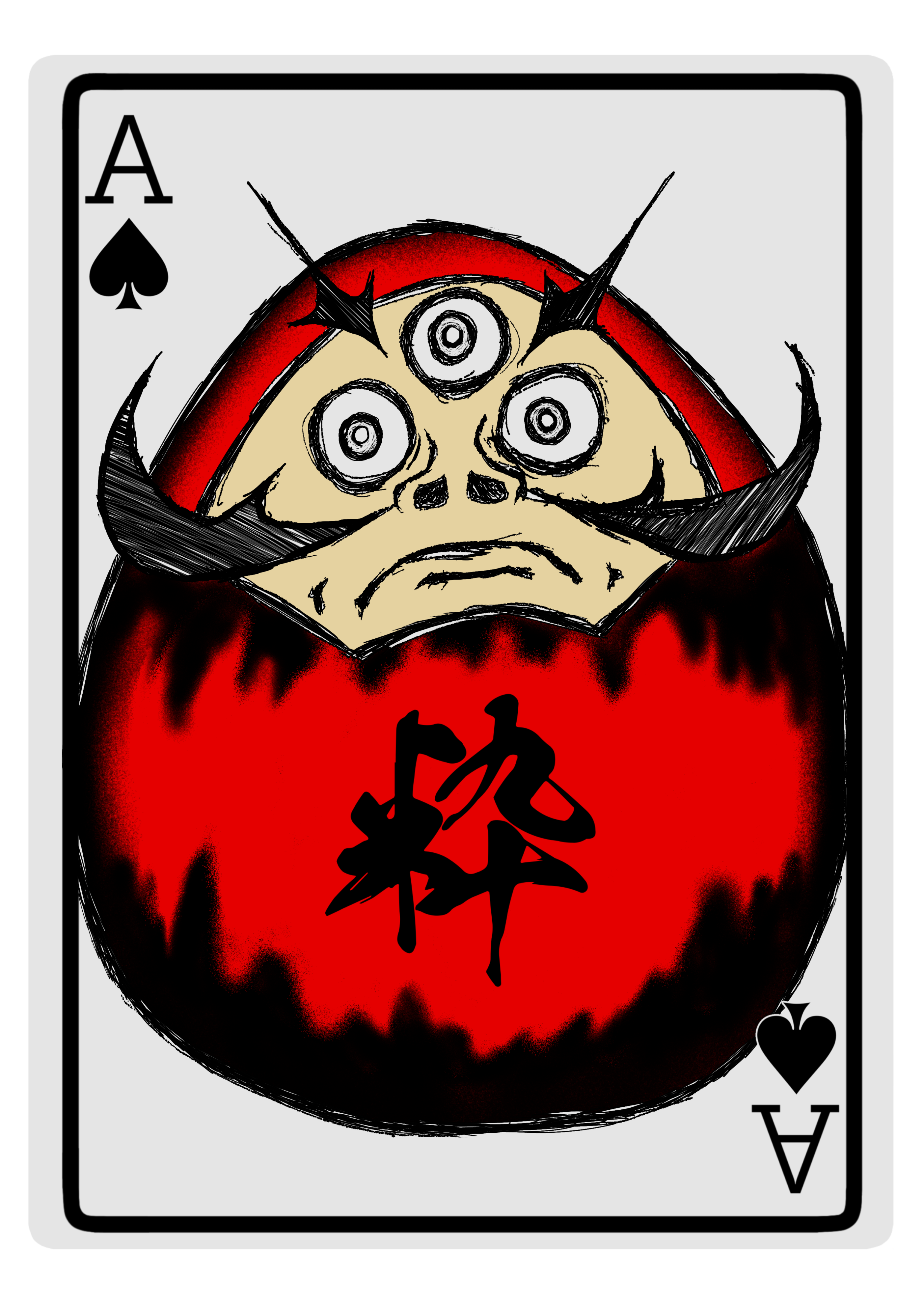 このデザインは、日本の伝統的な縁起物「だるま」をモチーフにしつつ、独自のアレンジを加えたアートワークです。