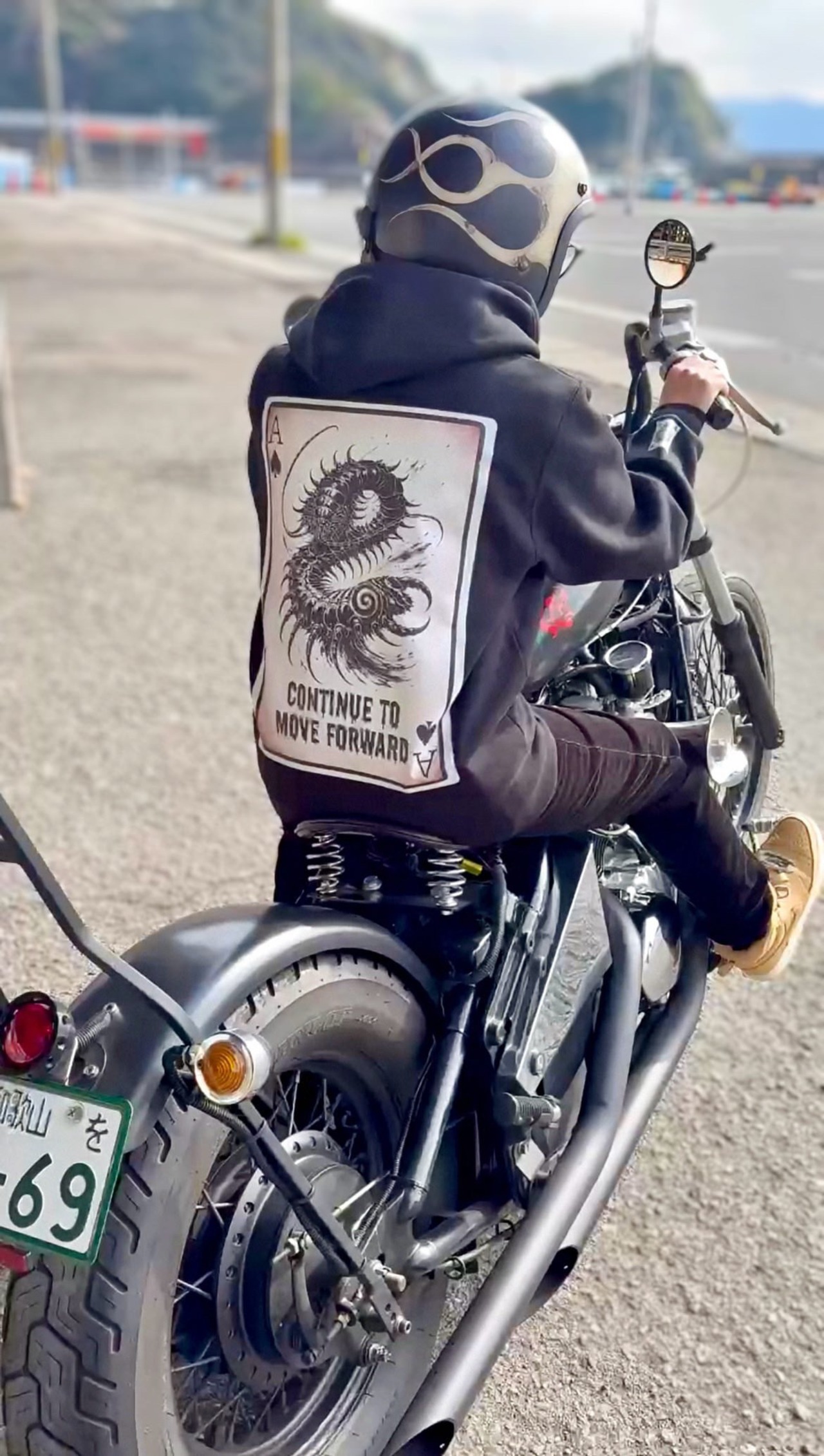 今後もこのムカデのデザインの様に前進し続けるバイク乗りでいたいです。