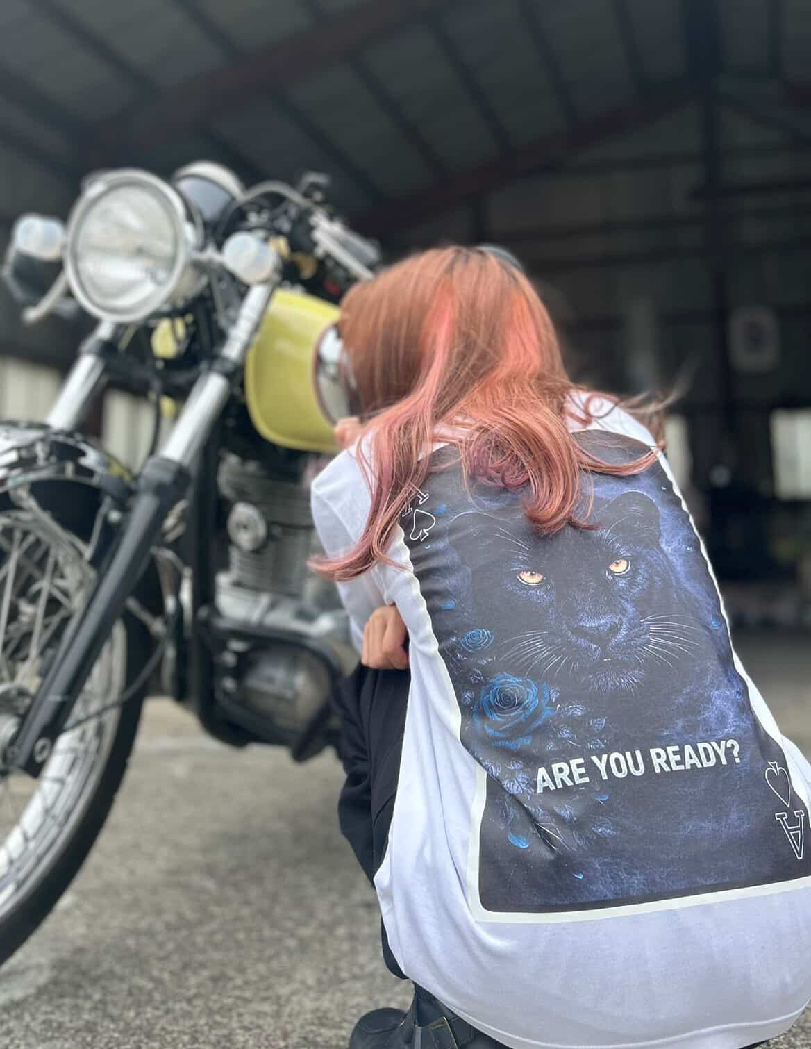 自分とバイクに声をかけて、